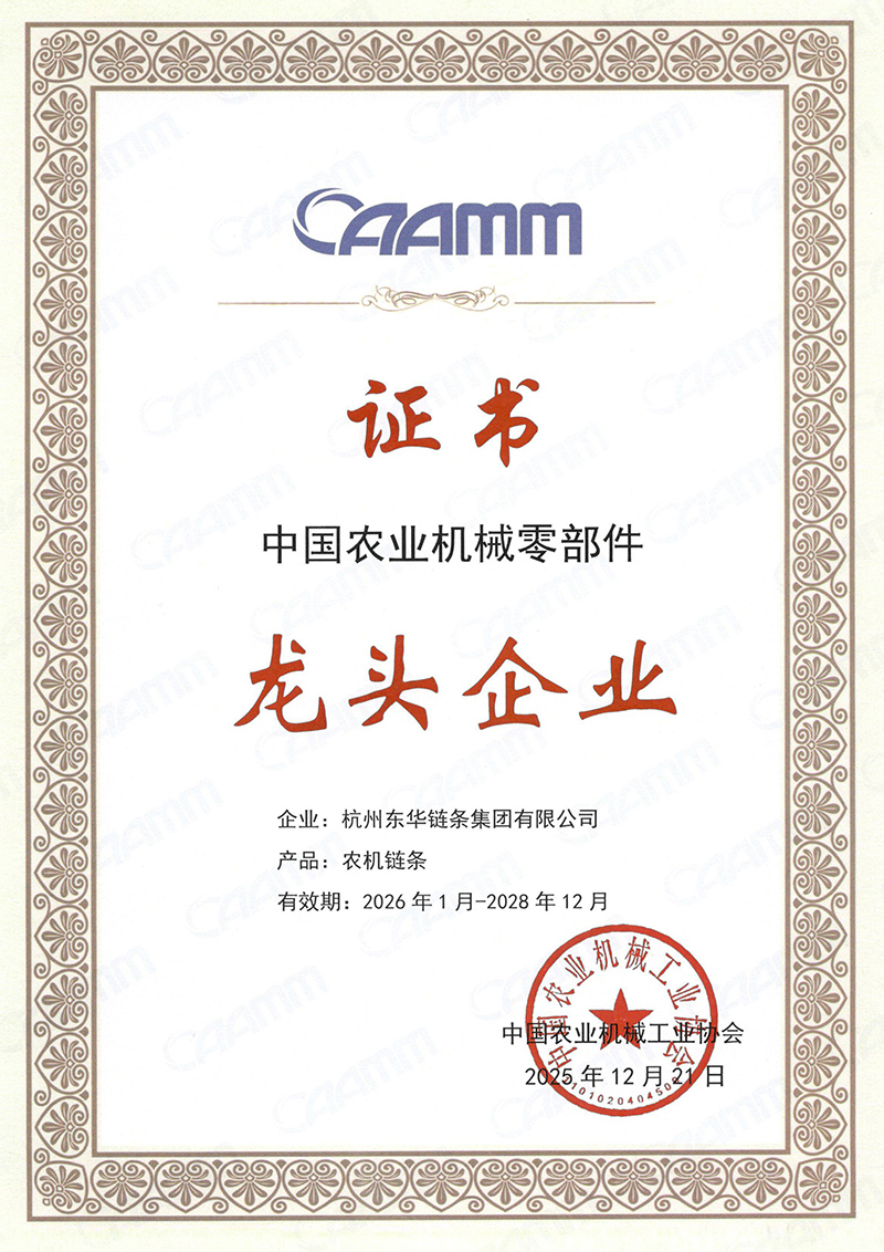 中國(guó)農(nóng)業(yè)機(jī)械零部件龍頭企業(yè)是國(guó)內(nèi)農(nóng)機(jī)零部件領(lǐng)域極具權(quán)威性的行業(yè)榮譽(yù)。東華鏈條自2016年以來,已連續(xù)多年獲此殊榮,彰顯了企業(yè)在農(nóng)機(jī)傳動(dòng)領(lǐng)域的持續(xù)領(lǐng)先地位。