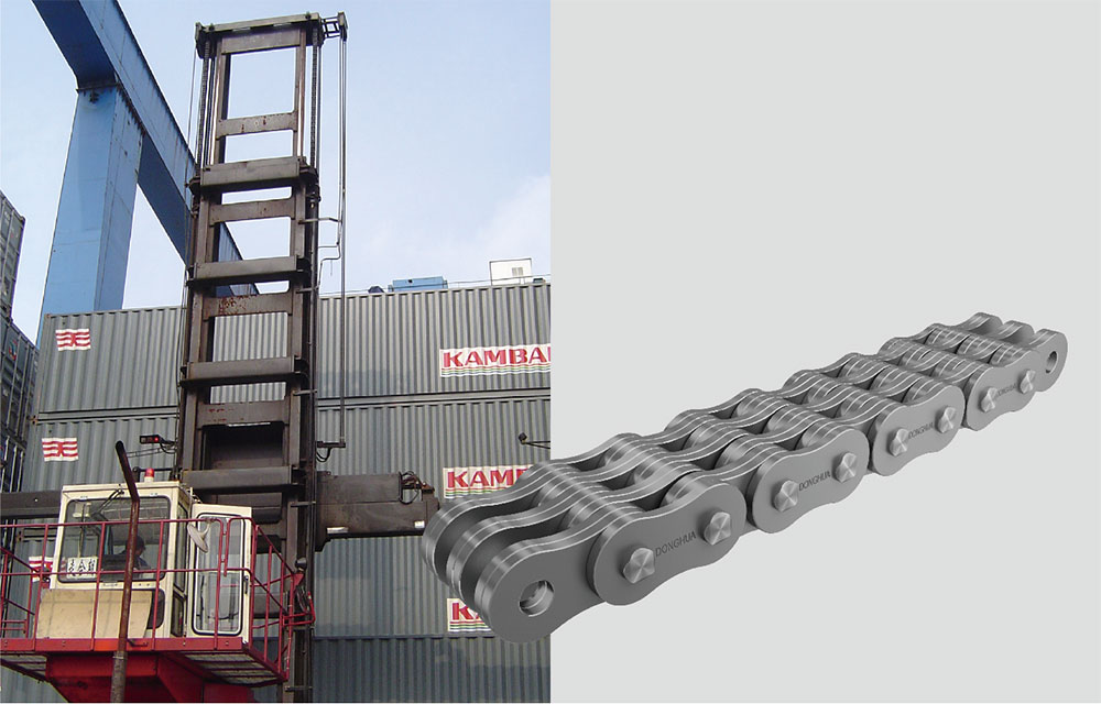 ● 堆高機(jī)用板式鏈:通過(guò)優(yōu)化設(shè)計(jì)、特殊工藝,滿足堆高機(jī)承載大、提升高、連續(xù)露天作業(yè)等苛刻工況的使用要求;